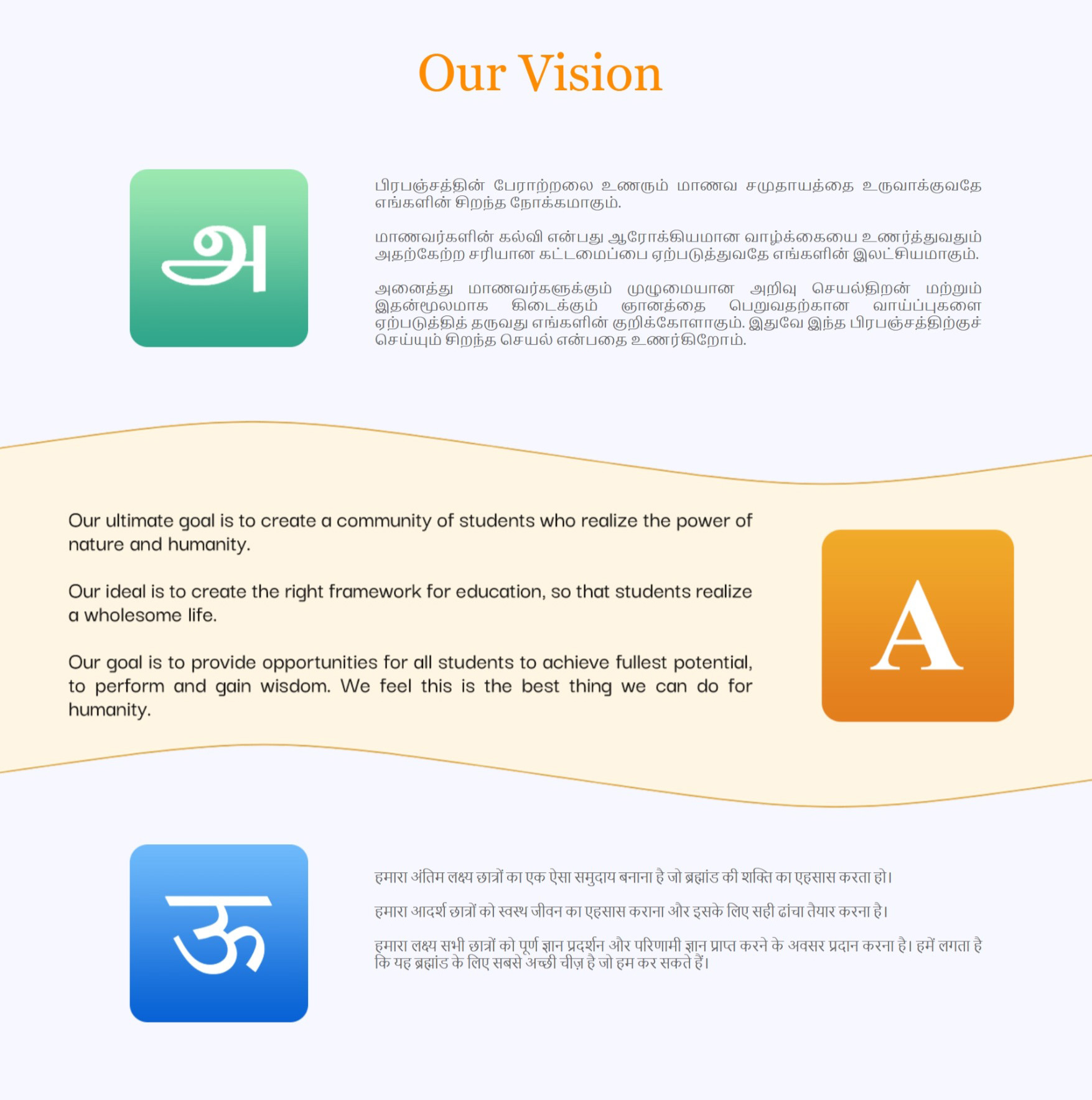 ARS Mothers Gurukulam encourages age appropriate personal development on artistic and social levels as well, apart from intellectual and practical. Our teachers emphasise creativity and imagination, a strong